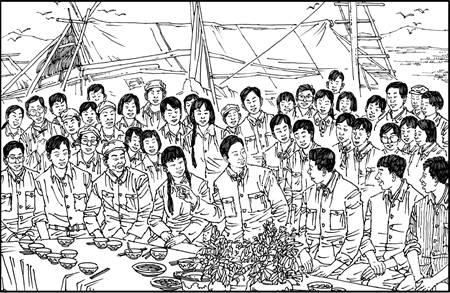 当天,父亲和他们就着咸萝卜干、黑泥豆,一起喝了顿稀粥。他边吃边和队员们聊天,问他们有什么要求,垦荒队长说:“我们这儿还没有名字呢。”父亲沉吟了一下说:“就叫共青社怎么样?”