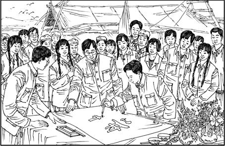 当时交通十分不便,父亲一行经浙江辗转来到德安时,正是青年垦荒队员们创造新生活的第三十九天。一到垦荒队,父亲就登上荒坡,一一查看队员们住的茅草棚。