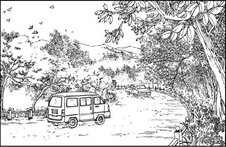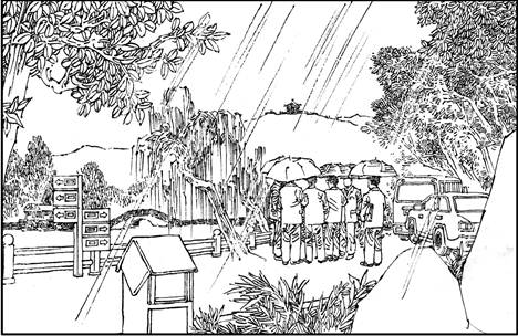 可是我觉得这里太荒凉了,连草都不长,只有山顶正中孤零零地斜长着一棵矮小的马尾松。我要求再看看别处。可是一离开这个小山包,雨下得瓢泼似的,我们只得往回走。