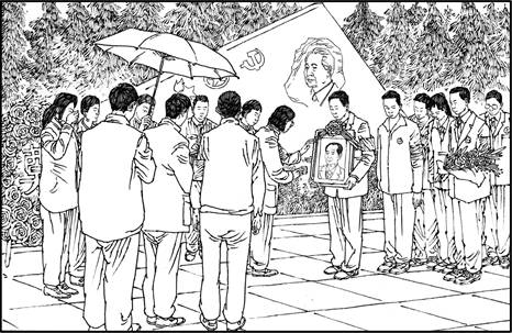 在墓前,母亲将父亲的遗像交给了于维忠,含着眼泪说:“从现在起,耀邦就是共青的人了,他的忠魂保佑你们事业兴旺发达。”于维忠激动地表示:“我们一定记住耀邦同志的教导,把共青的事业办好!”